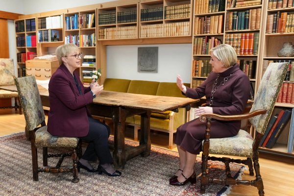Forseti Slóveníu, Nataša Pirc Musar, átti tvíhliða fund með forseta Íslands, Höllu Tómasdóttur í bókhlöðunni á Bessastöðum klukkan 10 í morgun. Þær ræddu um samskipti landanna tveggja, þróun heimsmála og þær leiðir sem leiðtogar, ekki síst kvenleiðtogar, hafa til að láta gott af sér leiða, bæði á heimaslóðum og á alþjóðavettvangi.