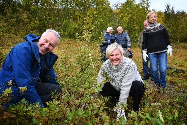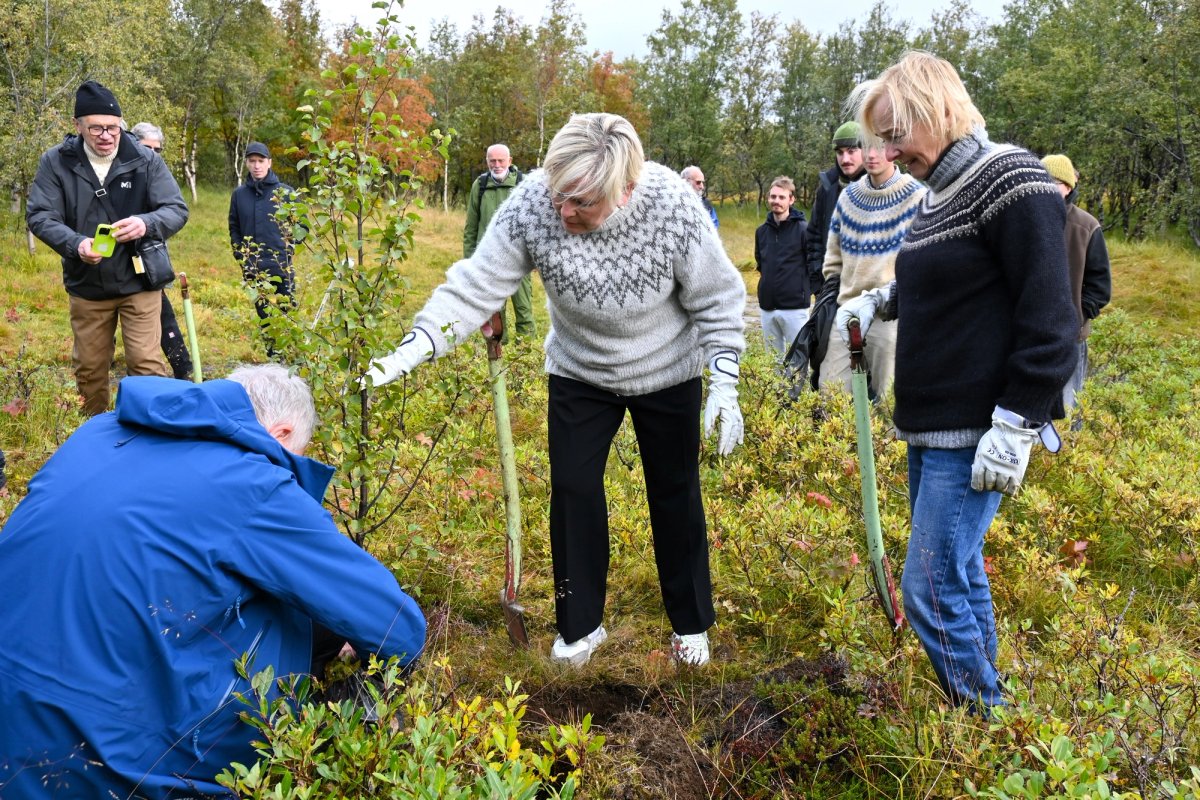 Forseti gróðursetur tré í Vinaskógi ásamt Jónatan Garðarsyni, formanni Skógræktarfélags Íslands. Ljósmynd: Skrifstofa forseta/Una Sighvatsdóttir