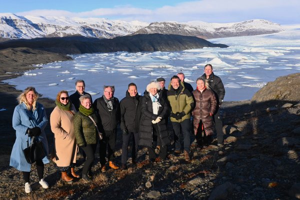 Hornafjörður er öflugt og vaxandi samfélag umlukið stórbrotinni náttúru við rætur Vatnajökuls. Forsetahjón flugu til Hornafjarðar að morgni 12. mars. Þar tók bæjarstjórn á móti forsetahjónum og kynnti þeim mannlífið og margvíslega uppbyggingu á svæðinu. Á öðrum degi heimsóknarinnar var farið í dreifbýli sveitarfélagsins. Dagurinn hófst við Hoffell. Þaðan var haldið í kúabúið Flatey á Mýrum. Þórbergssetrið á Hala í Suðursveit og að Jökulsárlóni. Eftir hádegi lá leiðin að Hofgarði í Öræfum þar sem var efnt verður til kaffisamsætis með íbúum Öræfasveitar. .Ljósmyndir: EFÍ/Una Sighvatsdóttir.